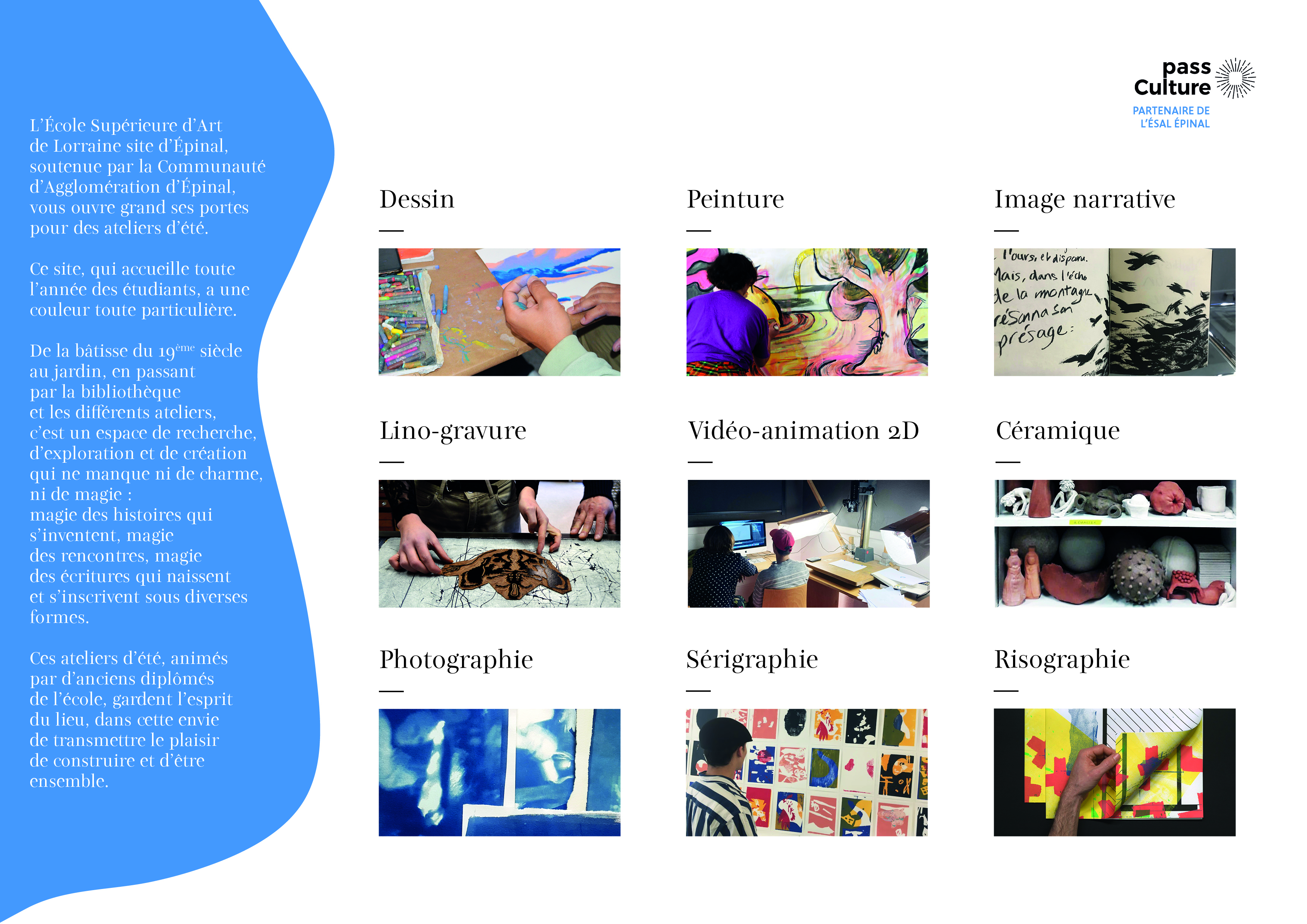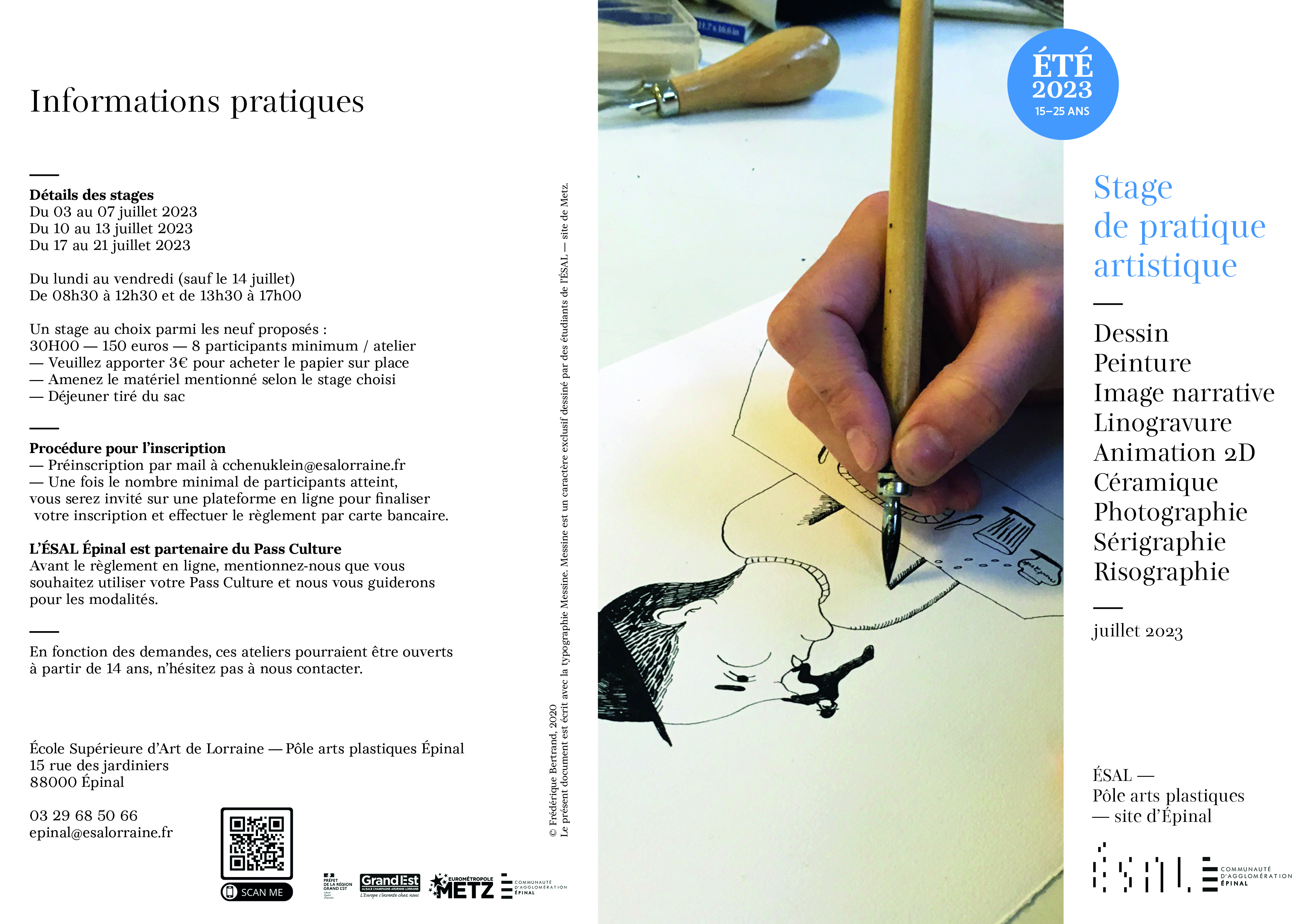 L’École Supérieure d'Art de Lorraine, Pôle arts plastiques Épinal est heureux de vous annoncer l’ouverture de ses stages de pratique artistique du 03 au 21 juillet 2023 pour les 15-25 ans !